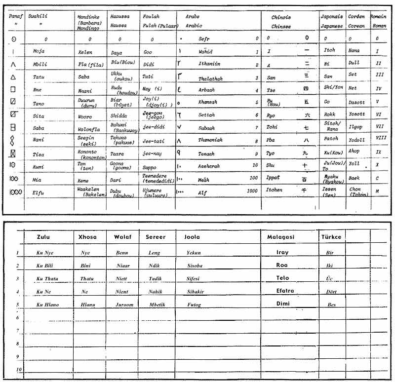 African way of Counting/Afrikanische Zählarten/Compter en langues Africaines